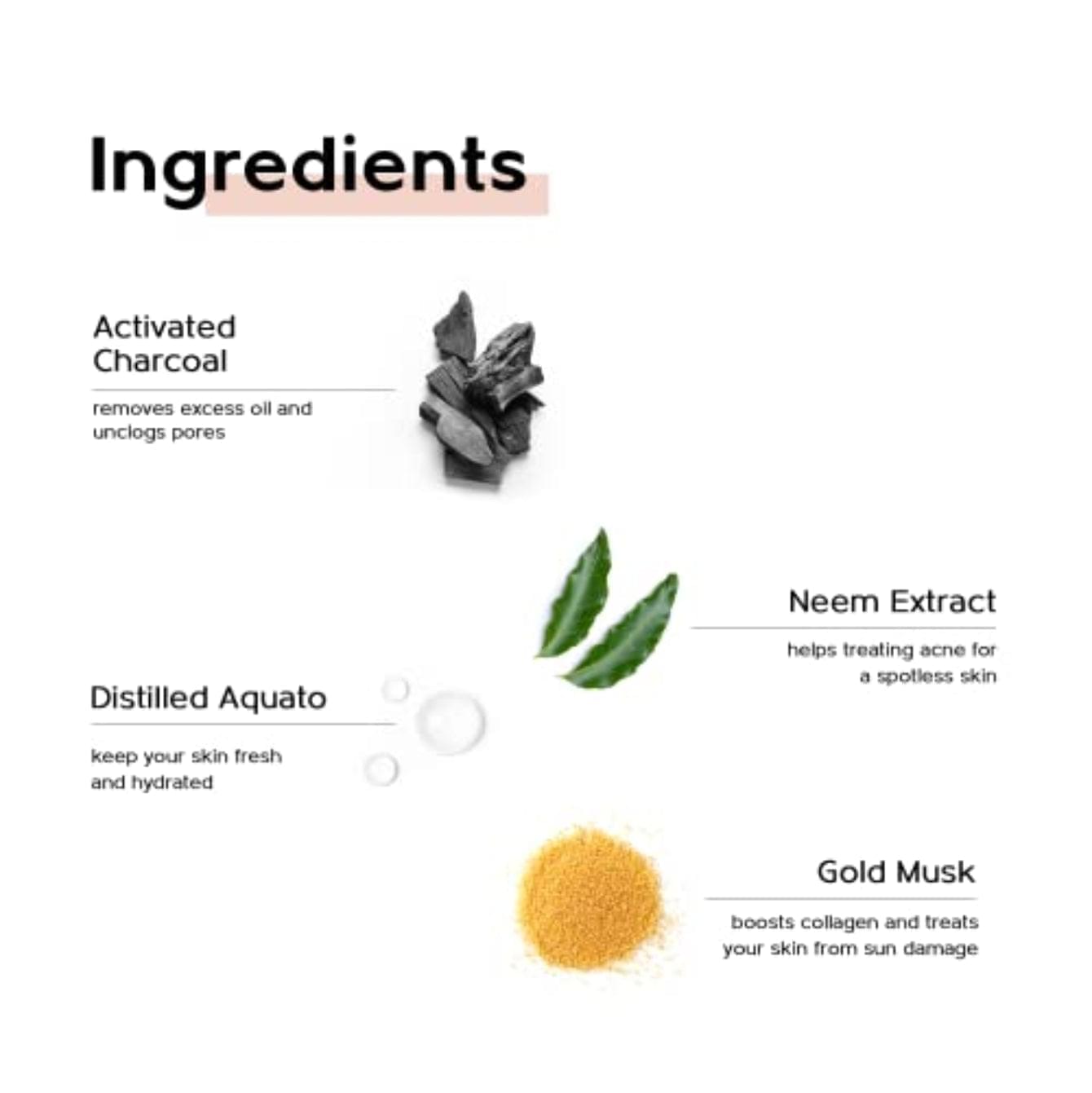 Our charcoal face wash also contains a blend of natural ingredients like neem extract, distilled aquato, and gold musk, which help to calm and nourish the skin, while also reducing blackheads and controlling excessive oil.